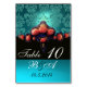 ROTE KORALE ROSE, AQUA BLUE BLACK DAMASK MONOGRAMM TISCHNUMMER