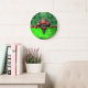 ROTE KORALE ROSE, BLUE EMERALD GREEN DAMASK MONOGR GROßE WANDUHR