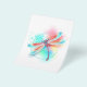 Rot, fliegend, künstlerisch gezeichnet, in hellen Farben mit texturiertem Schöpferdchen, blaue Flügel auf weißem Hintergrund, überstrichen mit Aquarellmalerei. Helle rote Libelle.