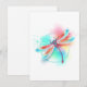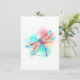 Rot, fliegend, künstlerisch gezeichnet, in hellen Farben mit texturiertem Schöpferdchen, blaue Flügel auf weißem Hintergrund, überstrichen mit Aquarellmalerei. Helle rote Libelle.