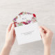 Ein wunderschönes Blumendesign mit lila, weißem Aquarellbouquet in einer einzigen Hochzeitseinladung. Ihre Gäste können die RSVP-Karte abreißen und per E-Mail zurückschicken. Alle Felder können bearbeitet werden.
