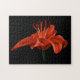Red Lily On Black Exquisite Single rote Lilie, im krassen Gegensatz zu einem dramatischen schwarzen Hintergrund.