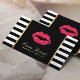 Makeup Artist Red Lips Modern Schwarz-weiß Stripes Business Cards.