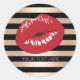 Rote Lippen Rose Schwarze Streifen Muster Runder Aufkleber