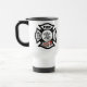 Rote Löschfahrzeuge für die Rettungsfeuerwehrmänner, die Notfall fahren, beschleunigen auf Malteserkreuzlogo Feuerabteilung.