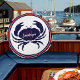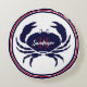 Nautic Mit Monogramm Red Navy Blue White Crab Round Kissen Mit einfach zu bedienenden Vorlagen für eine perfekte personalisierte Zuhause an der Küste