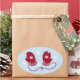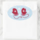 Rote Mitten und Schneeflocken Ovaler Aufkleber