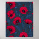 Rote Mohn und Ladybugs auf dunkelblau Poster
