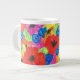 Eine prettyJumbo-Groß Kaffee-Tasse, mit einem vibrierend farbigen Muster der Scarletmohnblumen und der hellen blauen Cornflowers, von einem handgemalten Entwurf durch Judy Adamson.