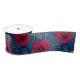 Rote Mohnblumen und blaue Maisblumen auf blau Satinband