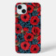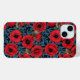 Rote Mohnblüten, blaue Blätter auf schwarz Case-Mate iPhone Hülle