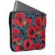 Rote Mohnblüten, blaue Blätter auf schwarz Laptopschutzhülle