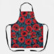 Rote Mohnblüten, blaue Blätter auf schwarz Schürze