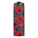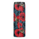 Rote Mohnblüten, blaue Blätter auf schwarz Thermosbecher