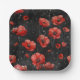 Rote Mohnchen auf schwarz Pappteller