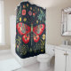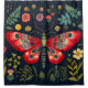 Eine lebendige rote Motte vor dem Hintergrund eines geheimnisvollen Nachtgartens.