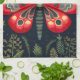 Eine lebendige rote Motte vor dem Hintergrund eines geheimnisvollen Nachtgartens.
