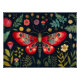 Eine lebendige rote Motte vor dem Hintergrund eines geheimnisvollen Nachtgartens.