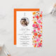 Rote orangefarbene Blumeninitialen Foto Hochzeit Einladung