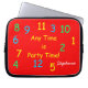 Ist jederzeit Party-Zeit, mein verrückter Uhrentwurf, verziert diese Laptophülse. Nichterfüllung ist rot, aber Sie können klicken "besonders anfertigen", um IHRE EIGENE HINTERGRUND-FARBE für diese Hülse ZU WÄHLEN. Sie ist mit weißer Skriptbeschriftung personalisiert. Wunderbares Abschlussgeschenk oder für Zurück zuSchool oder Weihnachten. Alle Rechte vorbehalten © Alan 2014 u. Marcia Socolik.