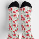 Ein Blumendesign aus roten Pappeln, weißen und grünen Elementen. Erstellen Sie ein botanisches Muster auf weißem Hintergrund.
