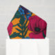 Rote Pfeffer und blaue Kornblumen auf Orange Seidenpapier