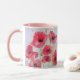 Tasse zum Zeichnen von Aquarellbildern mit roten Papieren. Ein wunderschönes Blumendesign in Aquarelltönen. Entworfen aus meinen ursprünglichen Aquarellbildern, die ich aus meinem eigenen Blumengarten gemalt habe.
