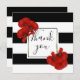 Schönes, elegantes Blumendesign mit Rahmen aus roten Pappeln auf einem schwarz-weiß gestreiften Hintergrund. Perfekt vielseitige Karte, die für jeden Anlass geeignet ist. Die Gäste nach einer Feier zu empfangen oder einem besonderen Freund zu danken. Sie können das Design des Produkts personalisieren, indem Sie den Text in dem angegebenen Feld ändern. Sie können Stil, Größe und Farbe des Schriftartes ändern, indem Sie die Schaltfläche Anpassen verwenden.