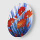 Ein Acrylgemälde aus roten Pappeln, in einem Feld abstrakten blauen Grases.