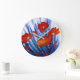 Rote Pflaumen im blauen Gras Große Wanduhr