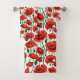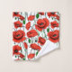 Handtuch-Set in einem zarten Muster von lebhaften roten Pappi mit tiefen grünen Stielen und Blätter, auf einer Weile Hintergrund, mit jedem Mohn blühen einzigartig gebogen und verdreht, als ob sie sanft in der Brise schwingen.