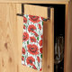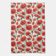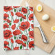 Handtuch in einem zarten Muster von lebhaften roten Mohnchen mit tiefen grünen Stielen und Blätter, auf einer Weile Hintergrund, mit jedem Mohn blühen einzigartig gekrümmt und verdreht, als würde es sanft in der Brise schwingen.