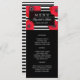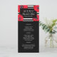 Schwarz-Rot-Hochzeitsmenü mit roten Pappeln gegen schwarz-weiße Streifen. Fügen Sie Ihre Hochzeitskarte, Namen und Hochzeitsdatum hinzu.