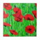Keramik Kachel in einem halb abstrakten, wasserfarbigen Muster von roten Mohn in einem Feld, gegen grüne Stiele und Blätter