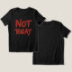 Fett rote Pinseltypografie, die den Satz "Nicht heute" bildet. Der Stil spiegelt eine rebellische und selbstbewusste Haltung wider, die einen starken visuellen Einfluss hat.