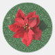 Rote Poinsettia auf grüner Weihnachtsaufkleber Runder Aufkleber