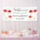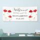 Modernes, elegantes, poppies, rot blühendes Aquarell Wedding Welcome Banner. Rustikales Mohnbanner auf den Wildblumen. Ideal für frische Weds. Man kann es mit Namen und Datum von Braut und Bräutigam personalisieren.