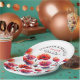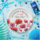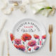 Hübsche rote Ölmohnchen, die von der Sonne beleuchtet werden. Rot und Grün. Personalisierte Teller für Probe, Hochzeitsempfang oder Brautparty.