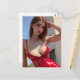 KI erzeugte Kunst einer schönen Frau, die in einem eng gekleideten roten Kleid gekleidet war