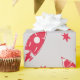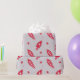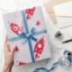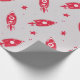 Dieses Musterpapier zeigt eine kindische Abbildung von roten Raumraketen und Sternen. Das ist eine großartige Wahl für Jungen oder Weltraum-Fans aller Altersstufen.
