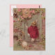 Vintage Red Riding Hood Illustration mit und weich rosa Rosen. Wolf in Oma Kleidung flüchtige Blicke aus dem Fenster, während Rot wartet, zu kommen.