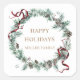 Rote Ribbon Winter Greenery Monogram Quadratischer Aufkleber