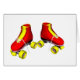Ein Paar rote Rollen-Skate mit gelben Spitzeen. Sie können die Hintergrundfarbe ändern oder Text während der Prüfung hinzufügen.
