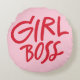 Verleihen Sie Ihrem Raum mit diesem runden Girl Boss-Kissen einen mutigen, stärkenden Touch. Mit auffälliger roter und rosa femininer Typografie bringt dieses stilvolle Accessoire Motivation und modernen Flair in jedes Sofa, jeden Stuhl oder jedes Bett. Perfekt für Boss Babes, die schicke, selbstbewusste Dekoration lieben.