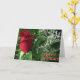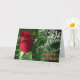 Roter Rosenbud und weiße Gypsophila. Die Karte drin lautet: wünscht euch einen Tag, der in jeder Hinsicht so besonders ist wie ihr. Alles Gute zum Geburtstag.