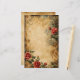 Rote Rosen, Goldelemente und farbige, alte Pergamente verbinden sich in einem schönen, gotischen, dunklen Fantasy-Schreibtisch.