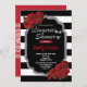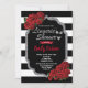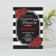Elegante rote Rosen mit schwarzen und weißen Streifen mit Imitaten silbernen Glitzer Rahmen. Perfekte Einladung für Dessous-Dusche, Brautparty und Bachelorette-Touren, etc. Thema: Romantischer Valentinstil: Elegante, glamouröse Farben: Rot, Schwarz, Gold, Weiß