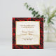 Fein und elegant in goldgekleideten Damast, mit einer schönen Fülle von rote Rosen an der Grenze. Passen Sie Ihre Brautparty-Informationen auf Vorder- und Rückseite an.