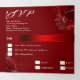 Ein wunderschönes, luxuriöses und gläsernes Design mit einem hübschen, roten Kristall-Kugelkronen-Set und einem dunkelburgundischen, roten Hintergrund mit zarten Blume der blumengeschmückten Rose und silberfarbenen Eckecken. In der Mitte befindet sich eine Fotovorlage und im unteren Drittel eine Antwortkarte mit personalisierter uAwg-Adresse und Menüoptionen für Ihre Gäste. Diese sind ideal für eine Quinceanera, Brautparty, einen Geburtstag eines Jahrtausends oder eine besondere Feier für die Frau. Personalisieren Sie die Formulierung, die Hintergrundfarbe und fügen Sie Ihr eigenes Foto, um es einzigartig zu machen.