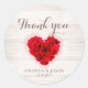 Herzförmige rote Rose auf Holz Hintergrund Hochzeit danken Ihnen rund Aufkleber. Matching-Produkte verfügbar. Suchen Sie "hhn01" um alle Produkte mit diesem eleganten und romantischen Design der rote Rose zu sehen